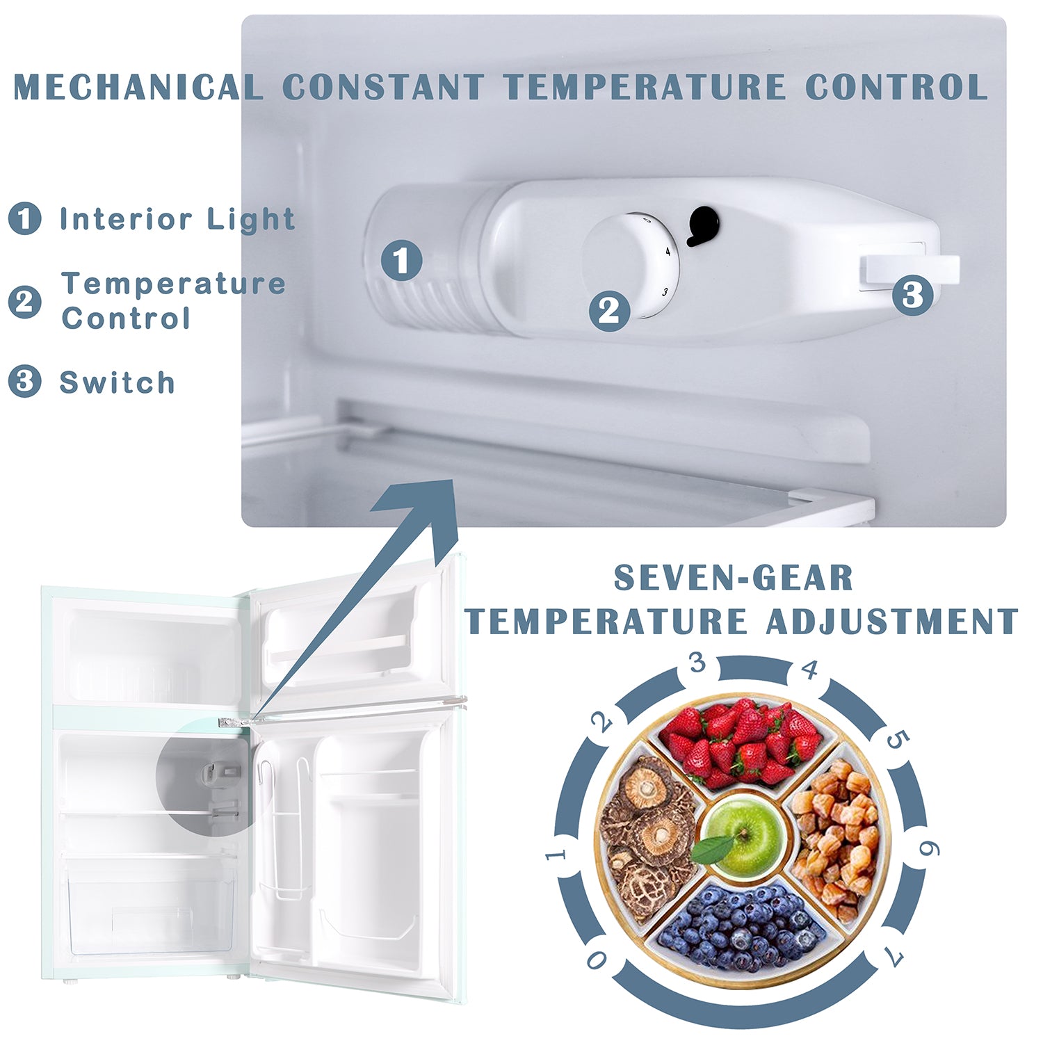 3,2 Kubikfuß (ca. 90 Liter) Retro-Minikühlschrank mit kompaktem Gefrierfach